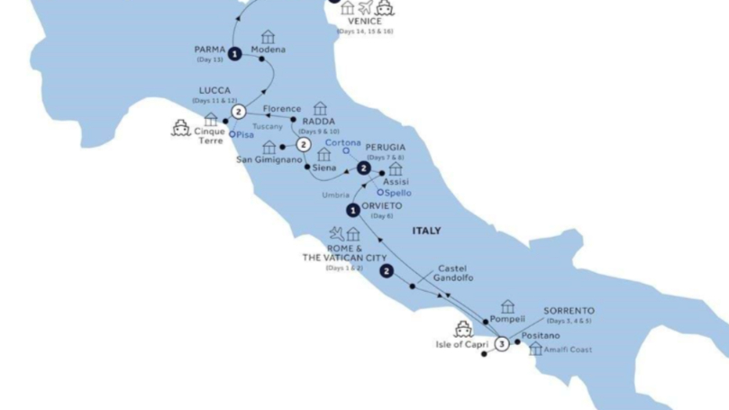 - Guided tours of Venice; Lucca; Florence (with Basilica di Santa Croce entrance); Pompeii; and Rome (with Colosseum entrance)